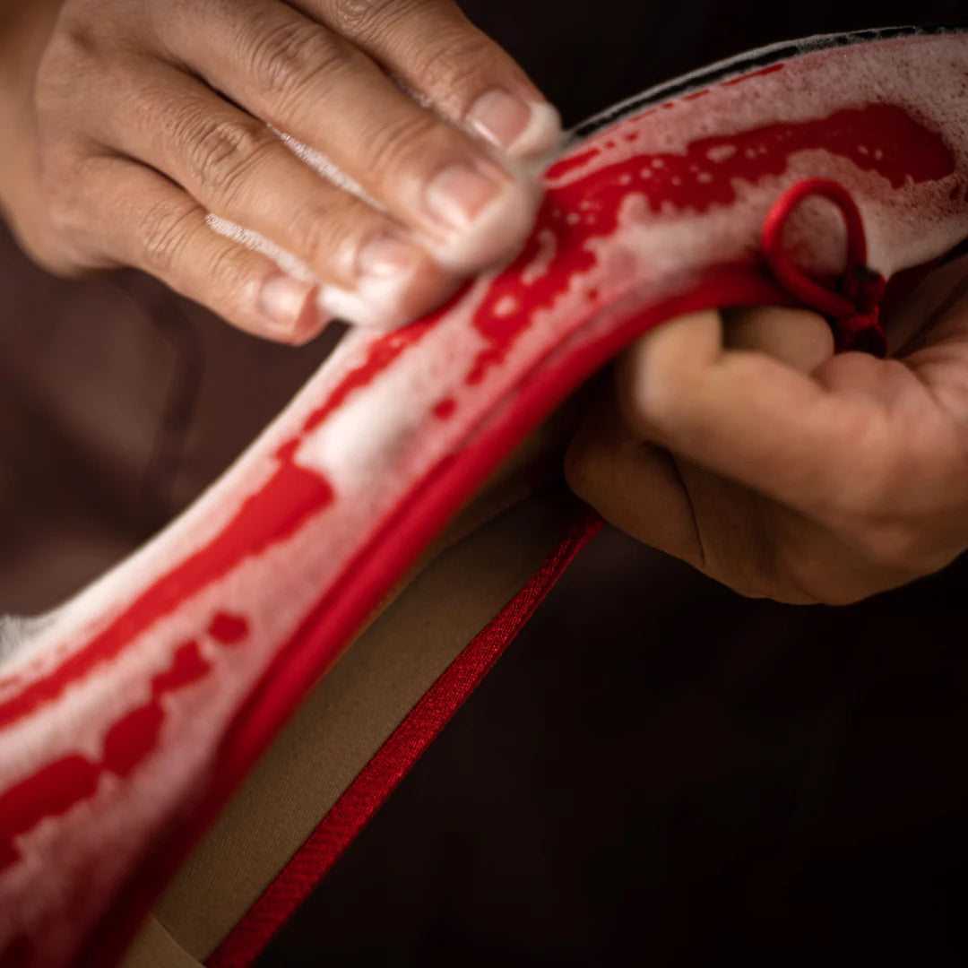 シャンプーが満遍なく行き渡る様にして、優しくウォッシングしていきます。ブラシでウォッシングすると、ほとんどの場合傷がついてしまいますので、手で優しくウォッシングしてください。