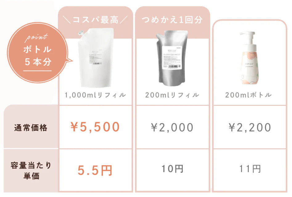 詰め替えも選べるからコストパフォーマンスも抜群
